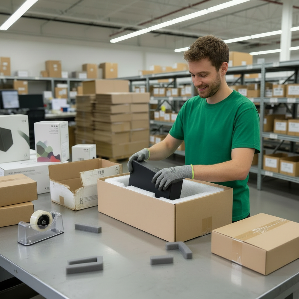 Items can be reboxed using neutral or client-supplied packaging when original packaging is unavailable or unsuitable.